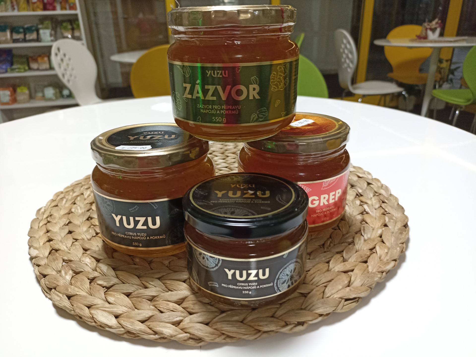 YUZU je citrusové ovoce plné vitamínů. Obsah vitamínu C je 5x větší než v citrónech. Gel z Yuzu, zázvoru, grepu, citrónu ... je podobný džemu a lze z něj připravit chutný teplý nebo studený nápoj, přidat do jogurtu, do čaje, namazat na housku, potřít moučník ...